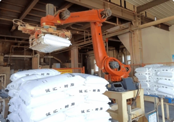 2月14日上午,在位于高青新材料產業園的山東誠匯新材料有限公司的粉碎車間,一臺碼垛機器人舒展長臂,將一袋袋包裝完好的醛酯樹脂準確地碼放在一輛無人駕駛智能穿梭車上后,這輛智能穿梭車按照規劃的路線,準確無誤地將一袋袋醛酯樹脂送入倉庫。