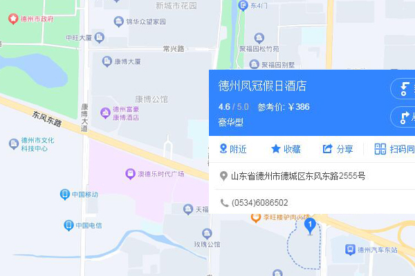 賓館地址:德州市德城區(qū)東風東路2555號。